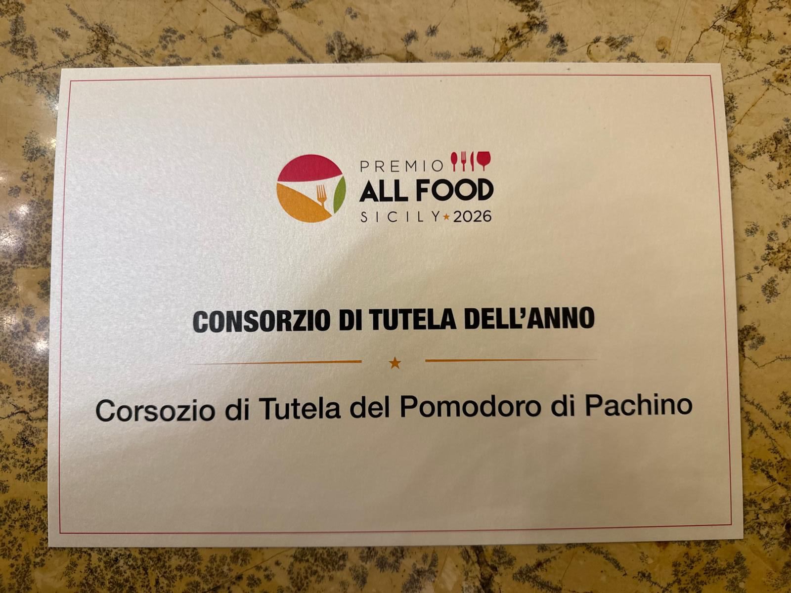 Il Consorzio di Tutela della IGP Pomodoro di Pachino ha ricevuto questa mattina il premio “Consorzio dell’anno” nell’ambito del Best 50 Sicily, il riconoscimento promosso da All Food Sicily che seleziona e valorizza le eccellenze dell’isola, le aziende, i professionisti e i protagonisti del settore che si distinguono per impegno, innovazione e capacità di rappresentare il territorio.